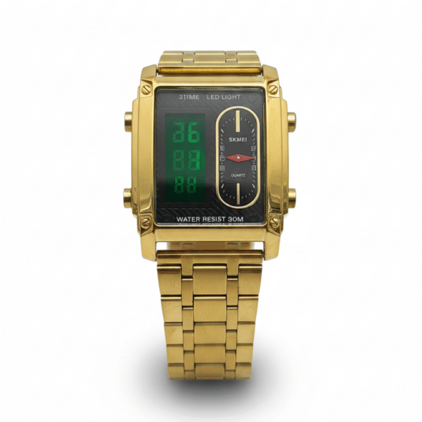 SKMEI Golden Elegance Analog Watch – Men’s Luxury Gold-Tone Timepiece