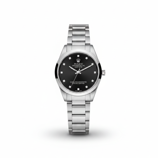 Rolex Silver Black Dial Watch – Luxury Stainless Steel Design