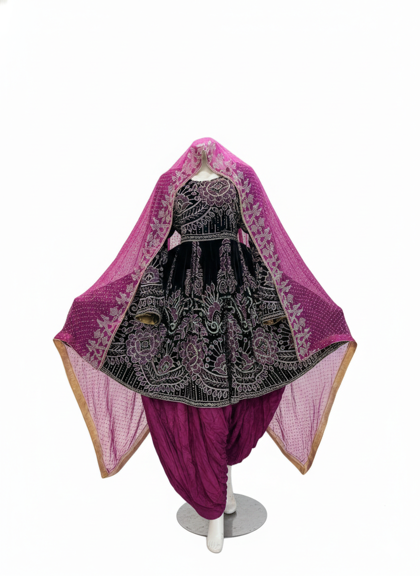 Be the first to review “Afghani Dress Traditional Ethnic Formal Outfit – Black & Magenta with Silver Embellishment”