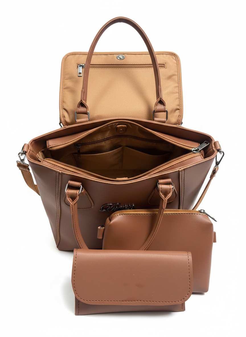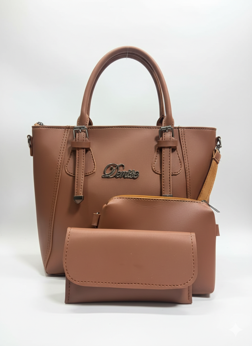 Upgrade your everyday style with this elegant Denisse 3-Piece Handbag Set in a rich Chocolate Brown shade. Designed for women who love both fashion and functionality, this coordinated set includes a Large Tote Bag, Medium Pouch, and Matching Wallet — giving you versatility for work, shopping, travel, and daily use.