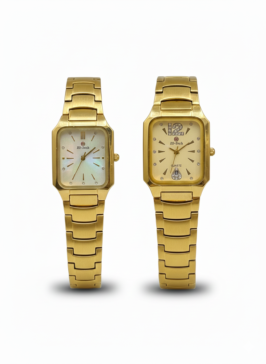 Hi-Tech Gold Couple Watches – Matching Gold Case & Bracelet | Quartz Timepieces