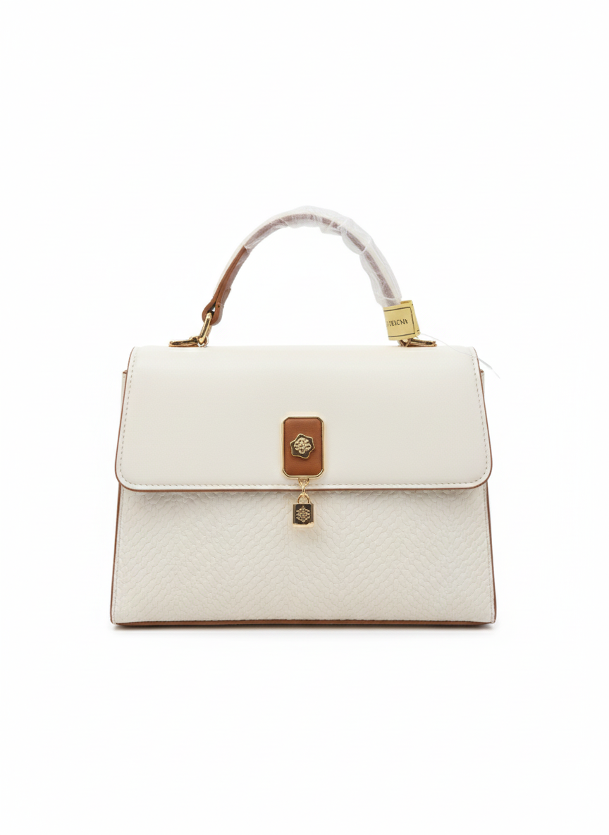 Step up your fashion game with the MODE White/Off-White Handbag with Brown Trim, a chic and sophisticated accessory for women who love timeless elegance. Featuring a crisp white/off-white body accented with brown trim and details, this handbag exudes a refined, luxury-inspired look perfect for office, casual outings, shopping, or special occasions.