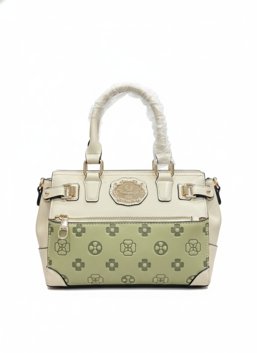 Add a touch of springtime elegance to your wardrobe with the Olive Blossom Print Front Zip Handbag. Featuring a delicate olive blossom floral print, this bag brings charm, freshness, and sophistication to any outfit. Its front zip detail not only enhances the design but also provides functional storage for essentials.