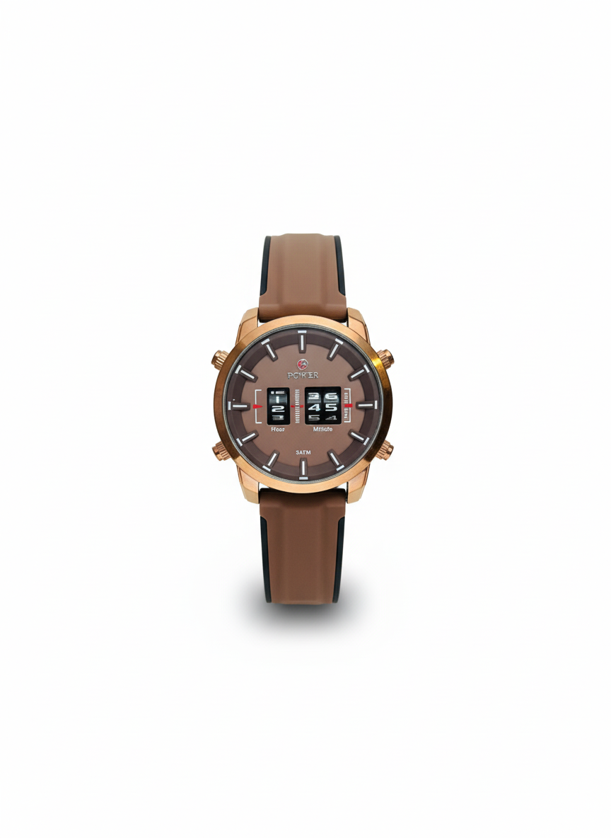 The POWER TimberBrown Analog-Digital Watch combines rugged style with modern functionality. Featuring a rich brown color across the dial and strap, this watch exudes warmth and sophistication while maintaining a sporty edge.