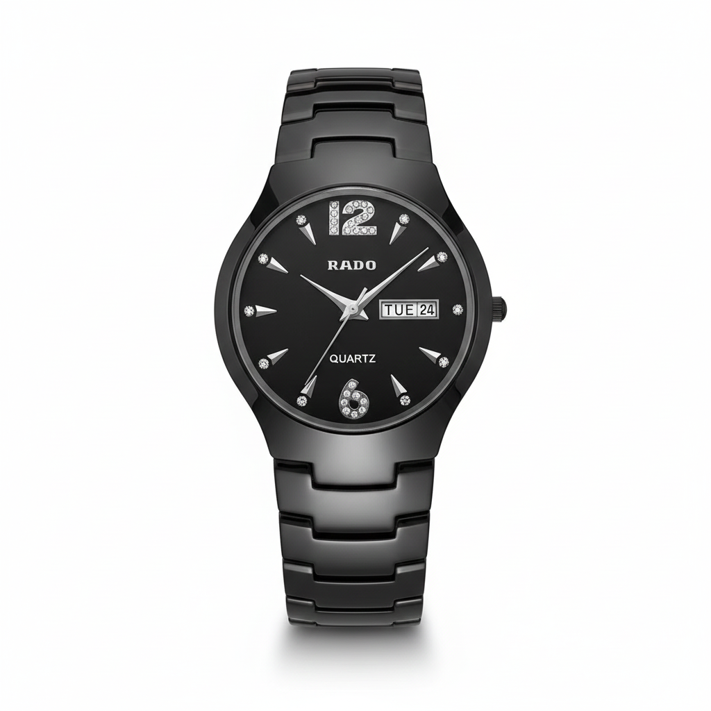 The Rado Black Ceramic Watch is a symbol of modern luxury, precision, and advanced material innovation. Designed for those who appreciate minimalist elegance, this watch features a premium black high-tech ceramic case and bracelet combined with a refined black dial for a sleek and contemporary appearance.