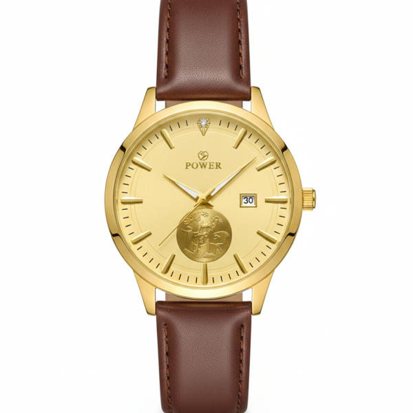 POWER Men’s Gold Watch – Gold Case & Dial with Brown Leather Strap (Quartz Timepiece)
