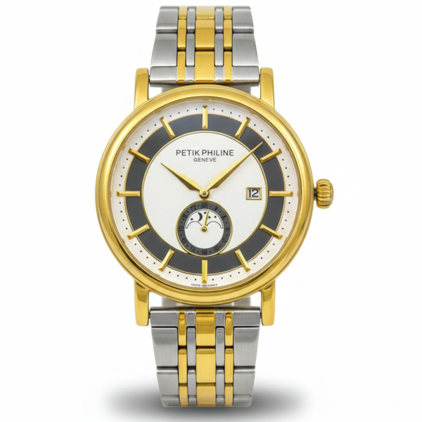 Patek Philippe Genève Silver Stainless Steel Watch – Black Dial with Steel Bracelet